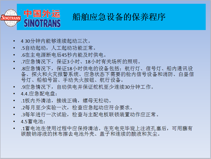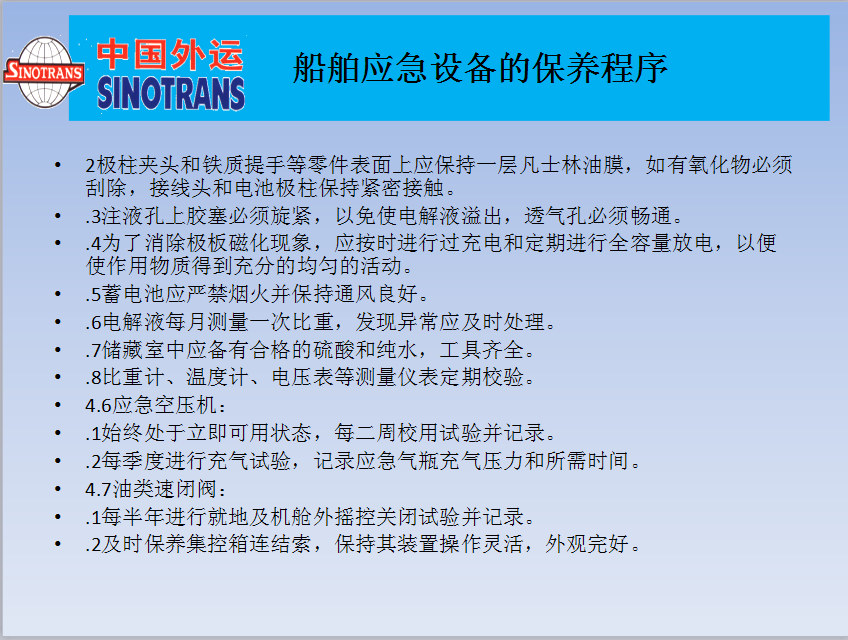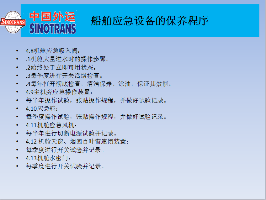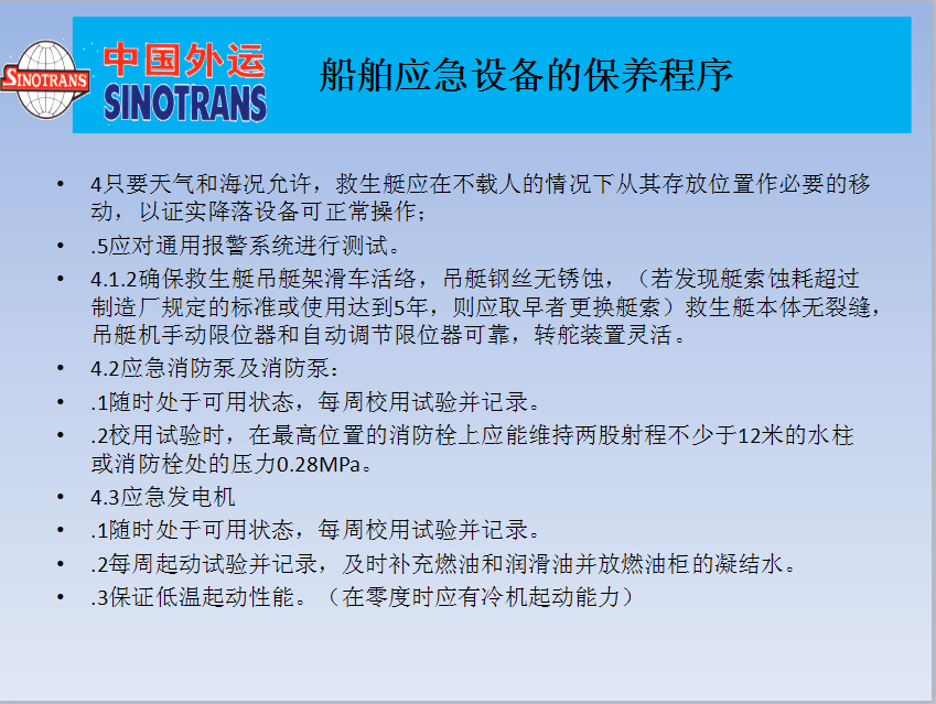 船舶應(yīng)急設(shè)備的保養(yǎng)程序
